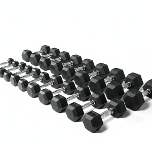 Molded Hex Rubber Dumbbell with Chrome Handle – Anti-Roll | Gym & Home Training